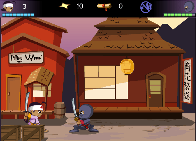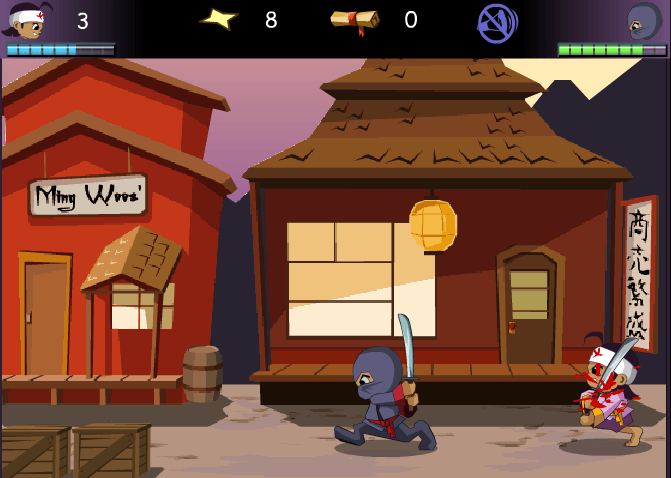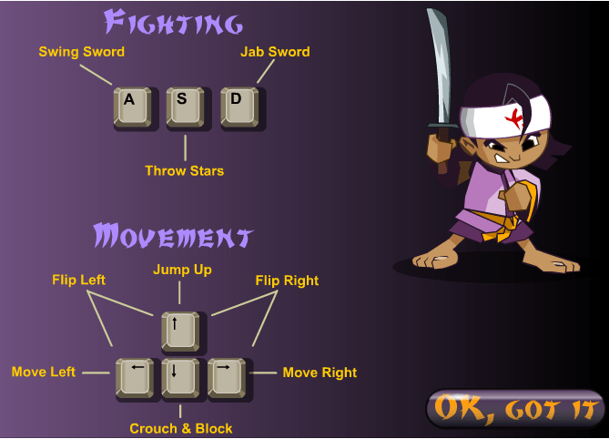 A-S-D tuşları ile çeşitli ninja vuruş,savunma tekniğini kullanabilirsiniz