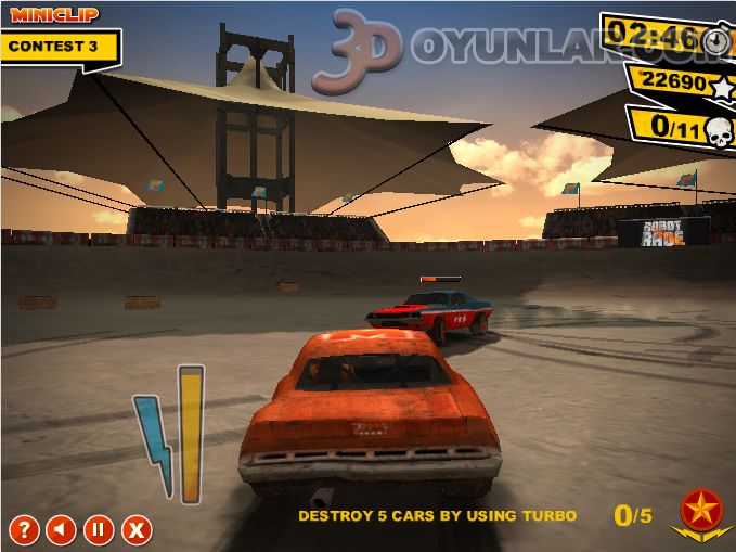 En çok arabayı patlatan 1. olacaktır. X tuşu ile el frenini aktif edebilirsiniz. Z tuşu ile de turboyu çalıştırın.