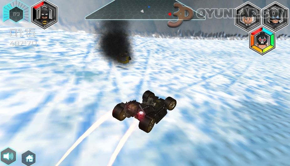 Batmanın süper korunaklı arabası ile diğer düşmanların arabasını patlatarak onları yok edin.