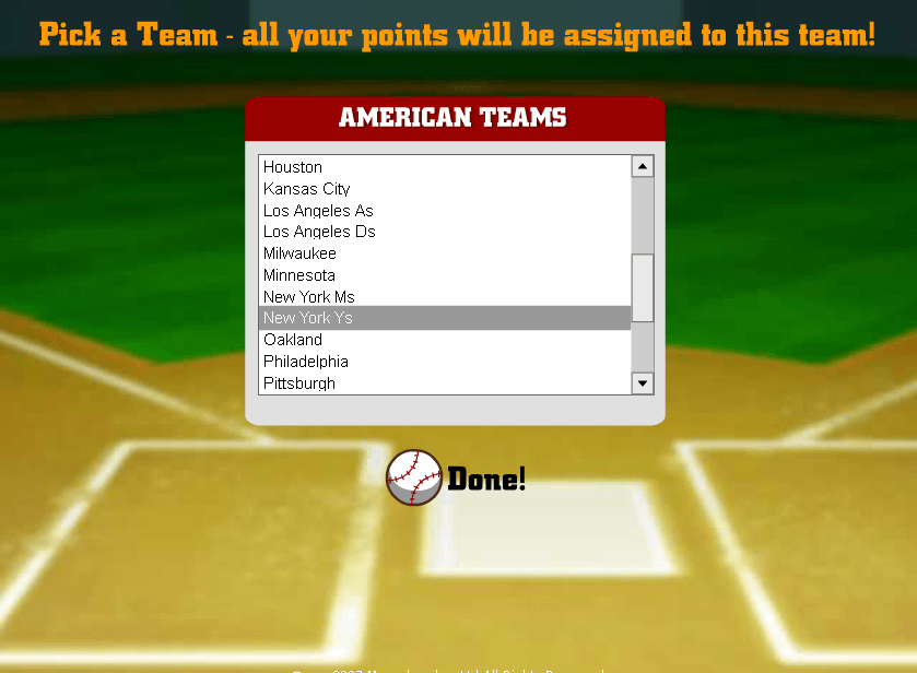 Pick/Change Team ile Amerikan Ligi takımlarından birini seçebilirsiniz