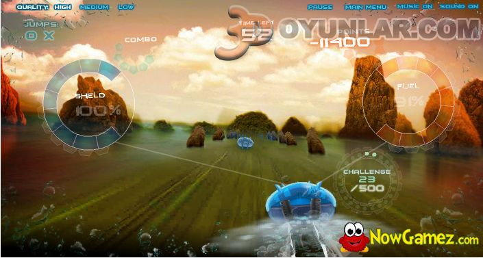 3D bot yarışı oyunu, suyun üzerinde rakiplerinizi geçin fakat yol üzerindeki engellere dikkat edin kaybetmenize sebep olabilir.