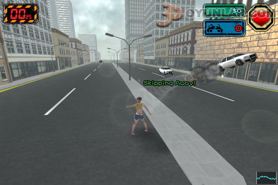3D çılgın trafik oyunu ile yoldaki çılgın arabalar size çarpmak için programlanmıştır. Sizde elinizdeki terlikler arabalara karşılık verin.