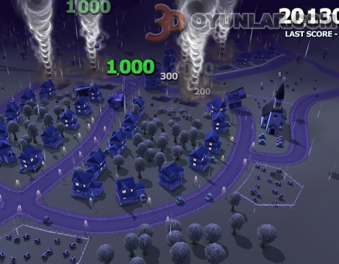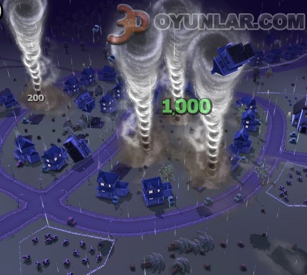 3D Fırtına Hortumu oyunu ile küçük bir kasabaya süper dehşet verici bir fırtına yaratarak kasabayı yok edin.