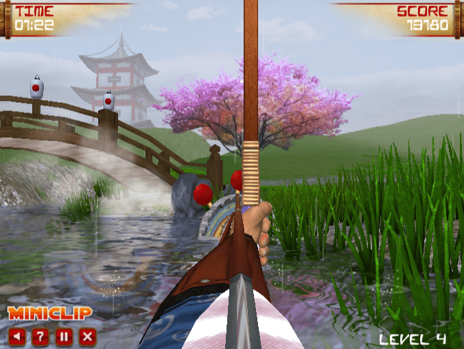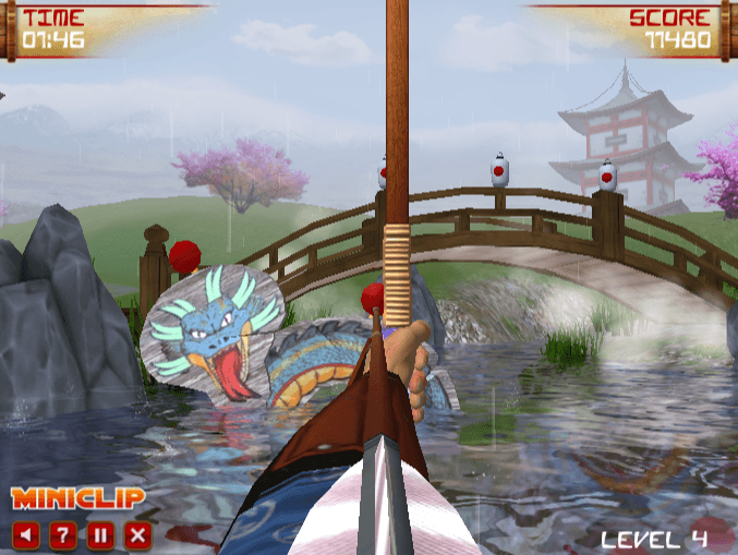 3D Japon Ok Ustası oyununda okçuluk becerilerinizi göstereceksiniz.Oyun zorluğu olarak Level atladıkça zorlaşacaktır.