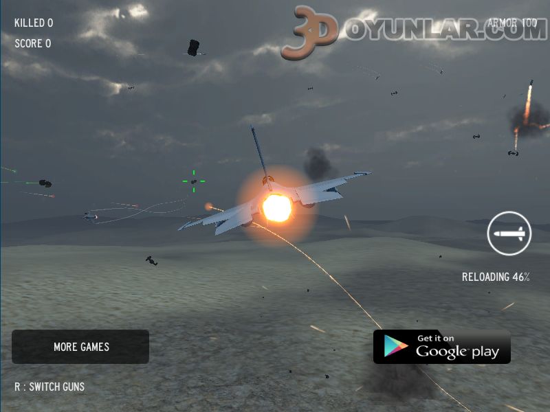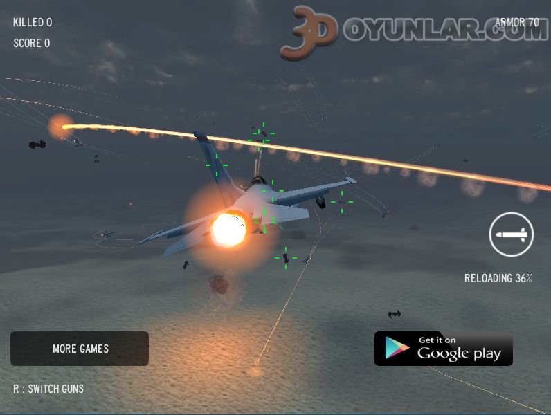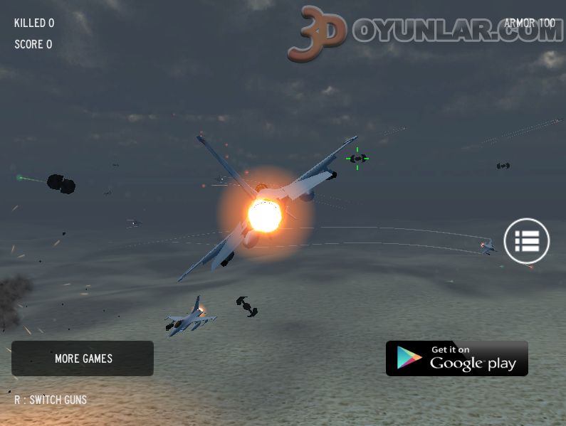 En iyi jet pilotunu seçmek için hazırlanan arena içerisinde silahlarınızı kullanın ve yok edin.