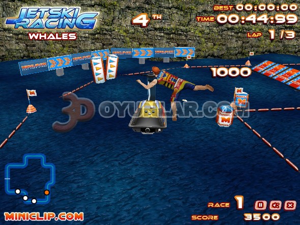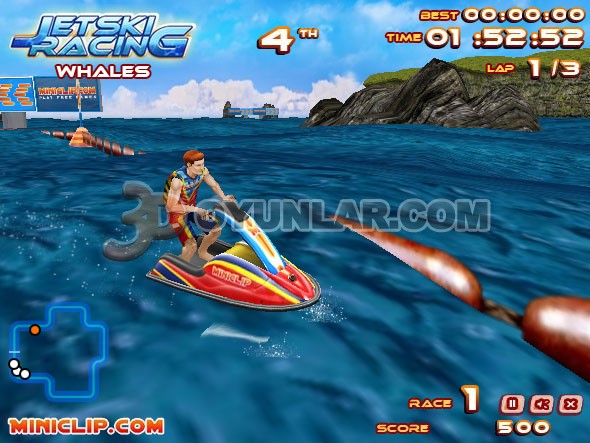 Yarışta toplam beş tane jetsky yer almaktadır. Üç turu tamamladığınızda yarış sona erecektir.