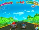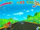 Çevrenizde ağaçlar, yolda engeller ve yarış karting araçları ile dolu.