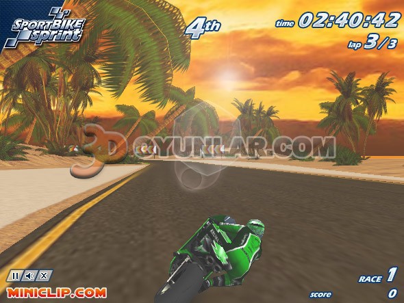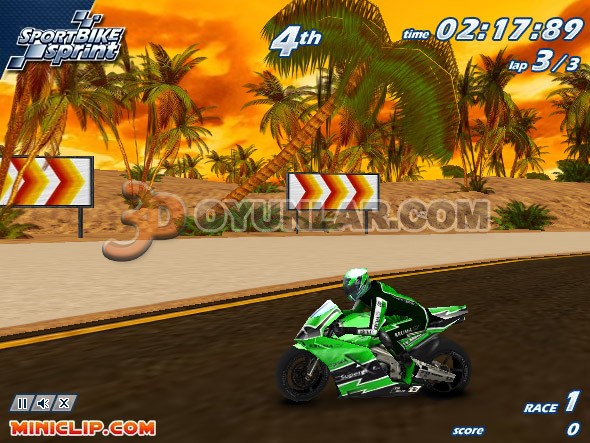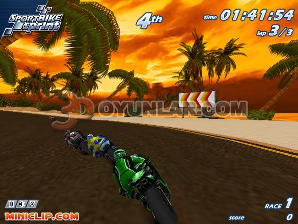3D Kawasaki yarış motoru oyununda hız motorunuz ile rakipleri geçip birinci olabilmek için elinizden geleni yapmalısınız. Motorun önünü kaldırmak için “X” tuşunu,sağa ve sola kaydırmak için “Z” tuşunu kullanabilirsiniz.