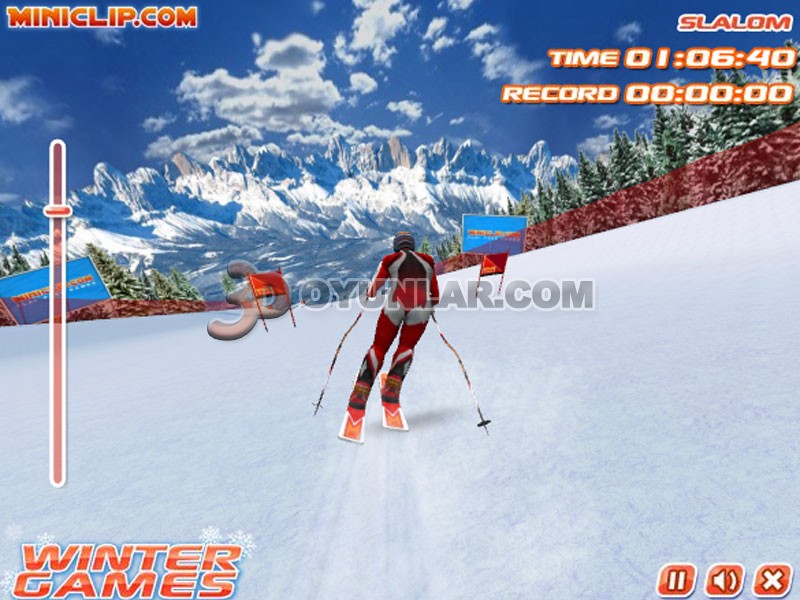 Mavi ve kırmızı renkli bayrakların ortasından geçmeniz gerekiyor. Atladığınız her bayrak için sizin puanınız azaltılmaktadır.