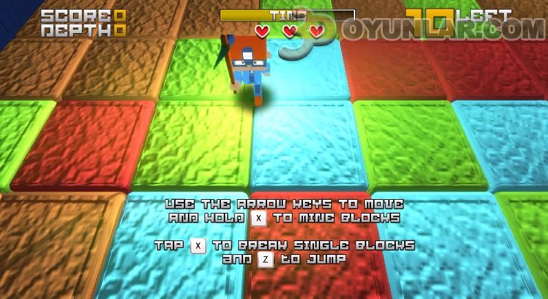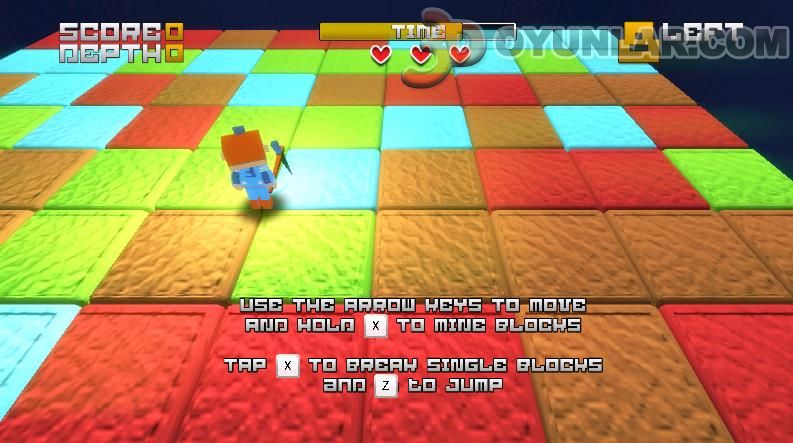 X tuşu ile kazma vurun , Z tuşu ile zıplayın.
