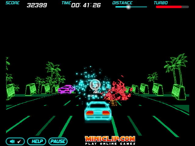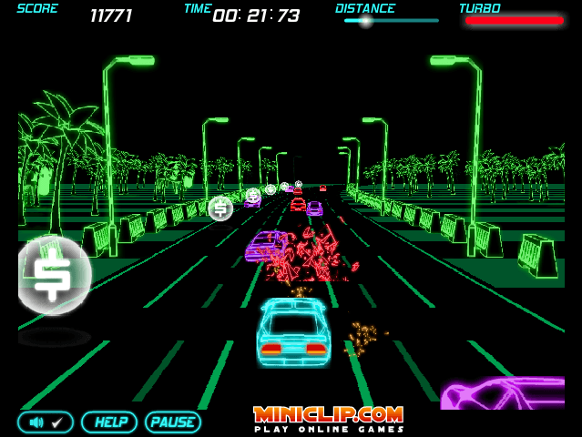 Oyunda Neon renkli arabalar, yollar, ve çevre gibi görebileceğiniz her alan neon ışıklarla süslenmiştir.