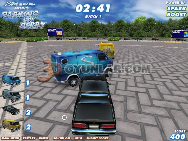 Onların 3 minibüsüne karşı sizin tek otomobiliniz adeta savaşıyor. Sizden alınmak istenen otopark üzerinde verilen süre içerisinde rakiplerinizi pistten atmalı ve mümkün olduğu kadar pistten az atılmalısınız.