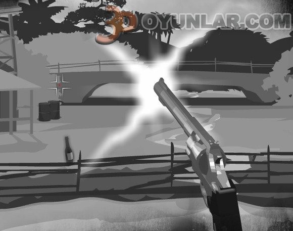 Size verilen kovboy tabancası ile aşğıdan fırlatılan şişeleri vurun.