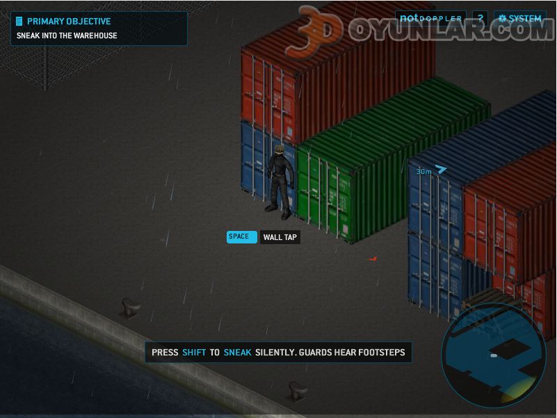 Askerlere bu saye de sesiniz de gitmeyecektir. Diğer bir tuş ise BOŞLUK tuşudur. Bu tuş ile iki işlemi yapabilirsiniz. İlki duvara vurarak ses çıkarıp askerin dikkatini dağıtmak ve tuzağınıza çekmektir.