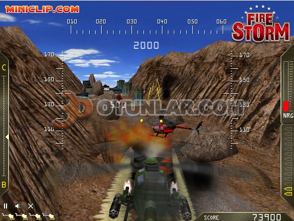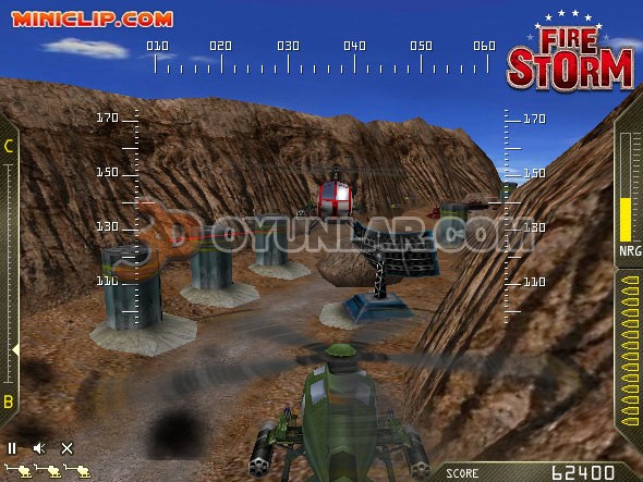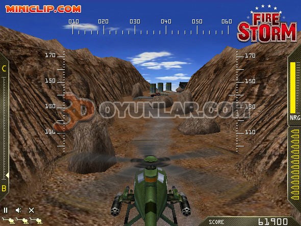 3D savaş helikopteri oyununda düşmanların sizi tuzağa düşürdüğü kanyondan sağ çıkmalısınız. X tuşu ile hava araçlarına C tuşu ile de karadaki düşmanlara ateş edebilirsiniz.