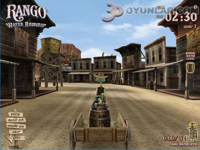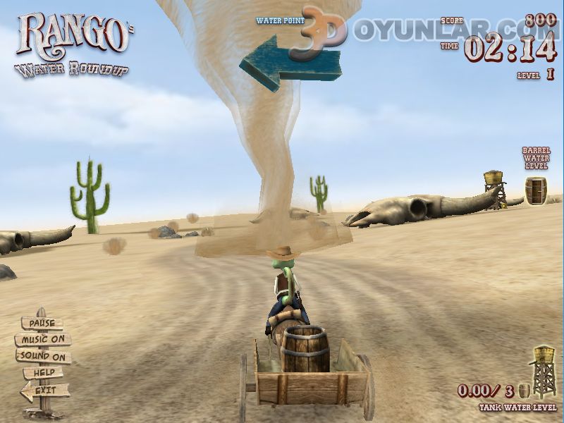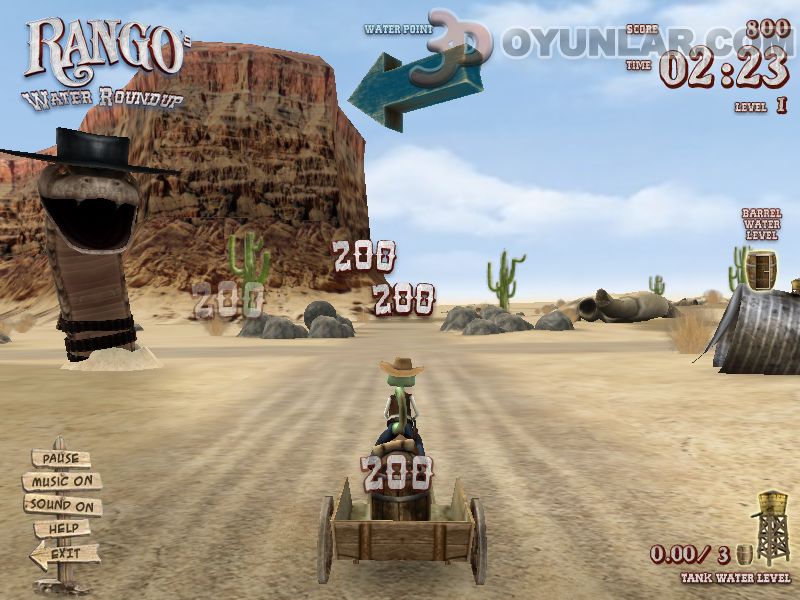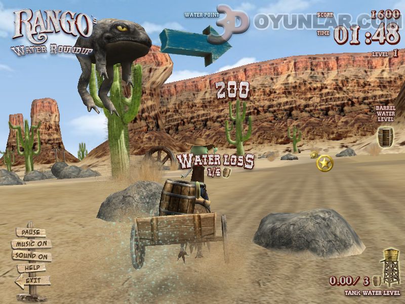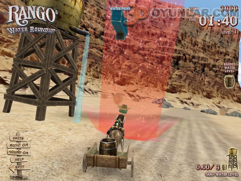3D su avcısı rango oyunu, kahraman şerifi rango kasabanın su ihtiyacını karşılamak için atı ile yarışta. Sizde rango çizgi film karakterinin yarışına yardımcı olun.