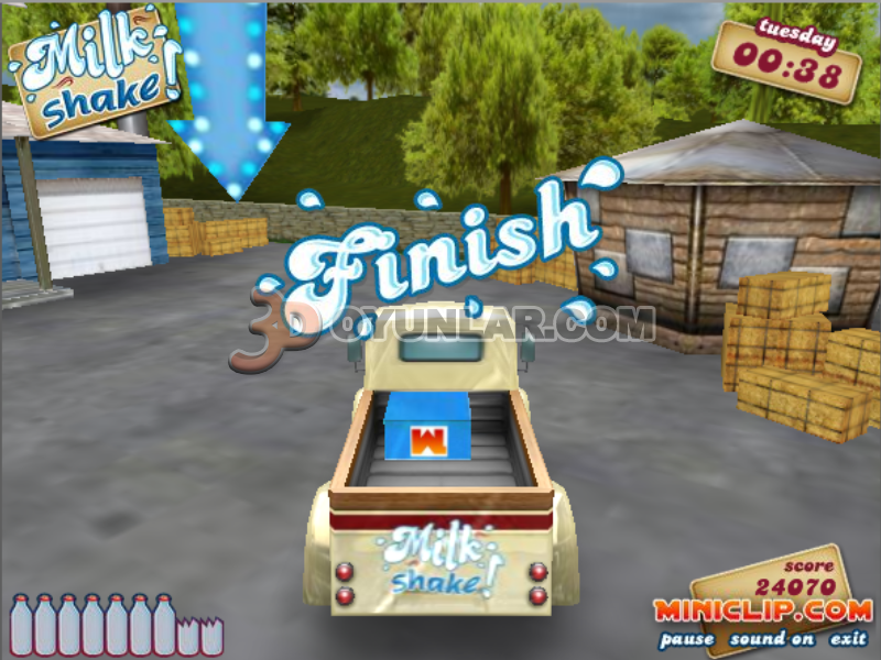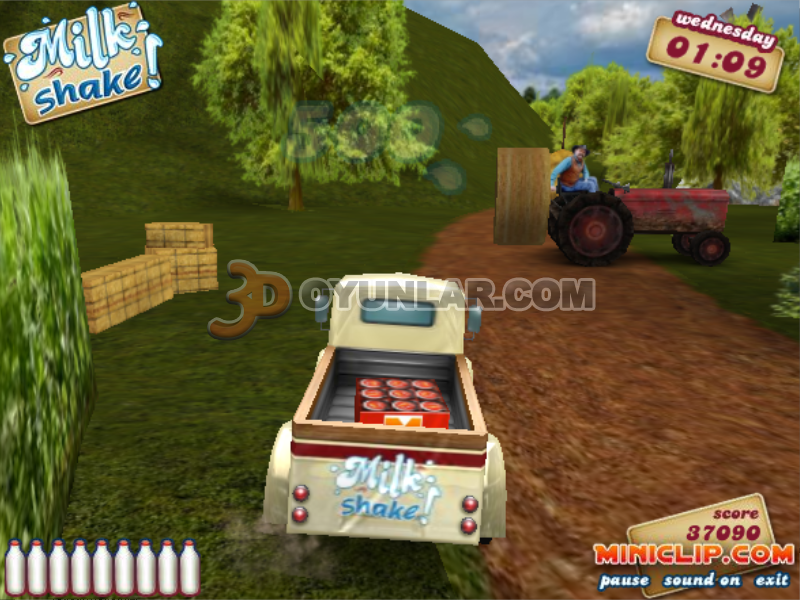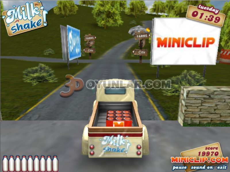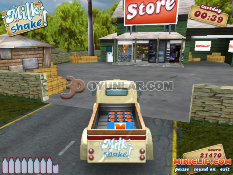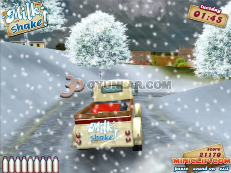 3d süt taşıyıcı oyununda kamyonetin şöförü rolündesiniz en kısa zamanda sütleri milk shake yapılması için üretici firmaya yetiştirmelisiniz.
