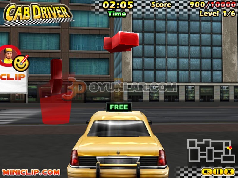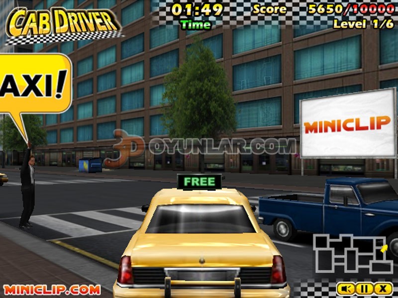 Taksi şöförüsünüz ve yolda size el kaldıran yolcuların önünde durup onları haritada belirtilen yere götürmelisiniz. mümkün olduğunca hızlı ve dikkatli giderek çok para kazanmaya çalışmalısınız.