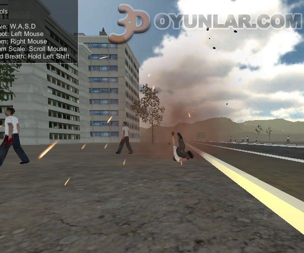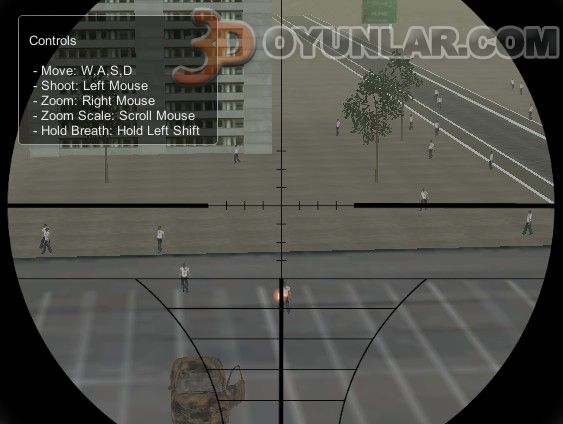 3D Zombi avı oyununda size yakınlaştırılabilir dürbünlü silah olan sniper silahı verilecektir.