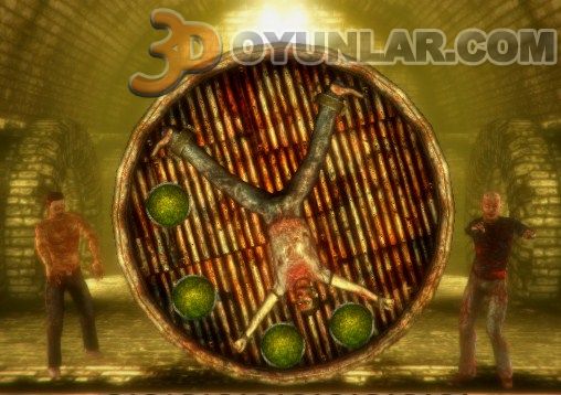 Enter butonuna tıklayınız. Oyun başlayacaktır. Bir hedef tahtası ve üstüne bağlanmış zombi. Zombinin kenarında ki yuvarlakları ok atarak bitirin.