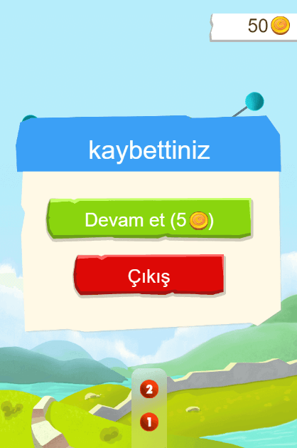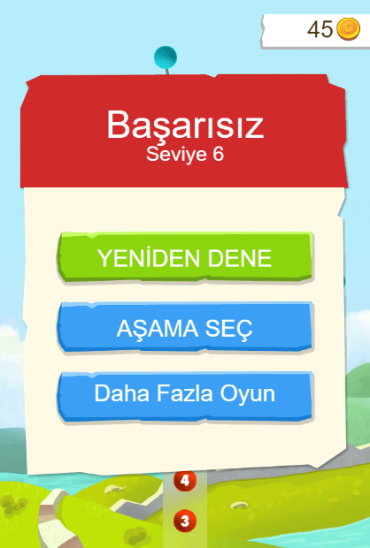 Oyunda bölüm bitirdikten sonra bir sonraki bölüme geçmek için SONRAKİ SEVİYE butonuna basabilirsiniz