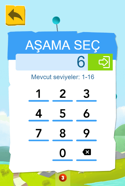 Eğer oynamış olduğunuz bir bölümü oynamak isterseniz AŞAMA SEÇ butonuna basıp oynamak istediğiniz bölümü yazarak ileri tuşunun simgesine basarak o bölümü oynayabilirsiniz.