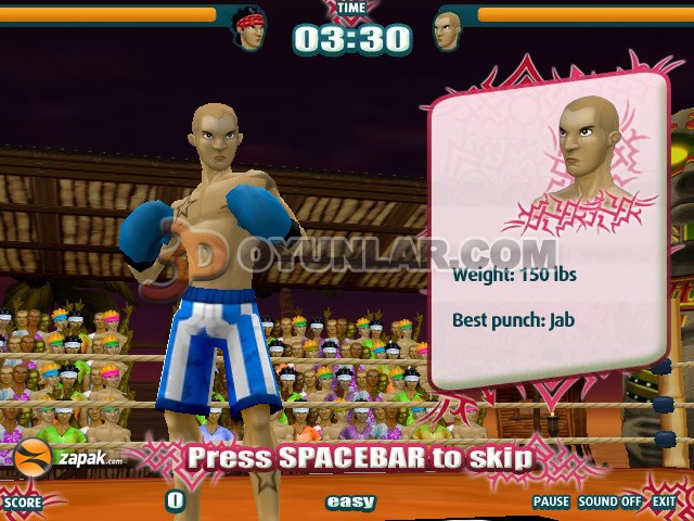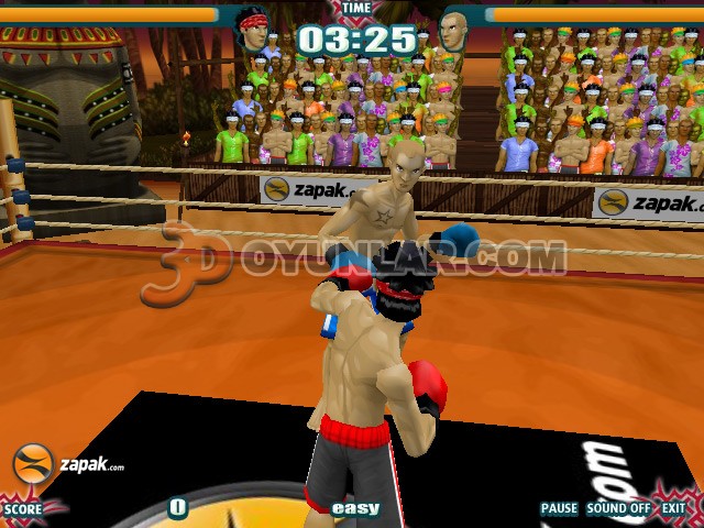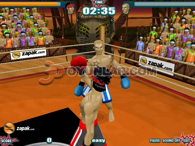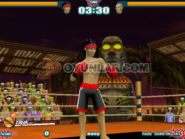 Boks kralı oyunu, toprak zeminde etrafı seyircilerin bulunduğu tribünlerle çevrili bu maç size gerçek boks heyecanını yaşatacak.