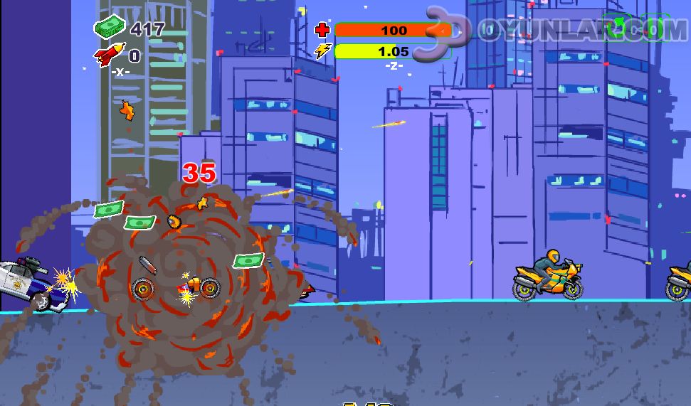 Yarış esnasında mücade etmeniz gereken motor, normal araç ve polis aracı bulunuyor. Bu araçları geçmek için nitronuzu ve silahlarınızı kullanmalısınız.