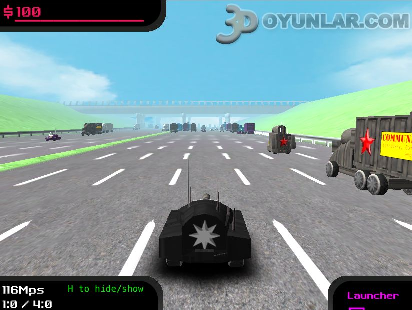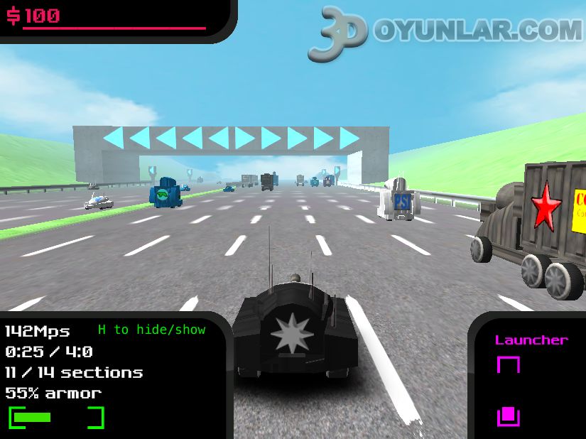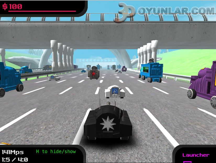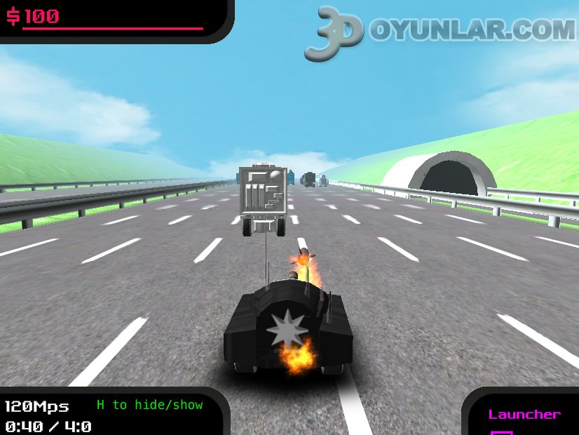 Cehennem arabası otobanda oyunu, otobanda kargaşa oluşturmalısınız. Hızlı ve silahlı arabanız ile sizde otobana girin.
