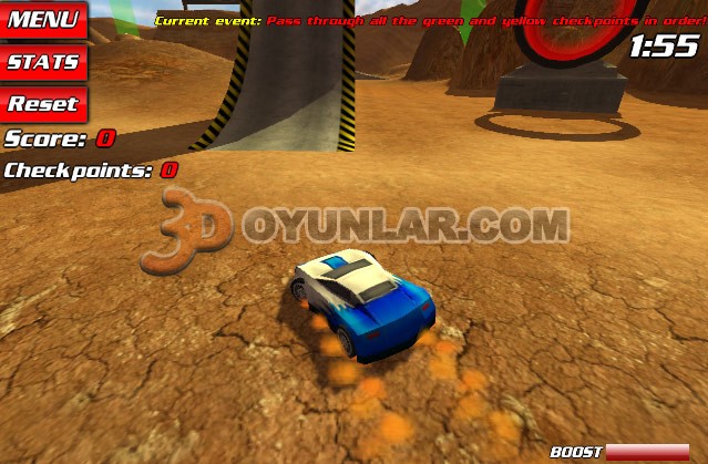 Gösteri Arabası Oyunu Arizona Çölü gibi bir alanda oynanmaktadır. Zemin kızıl renkli toprakla kaplıdır.