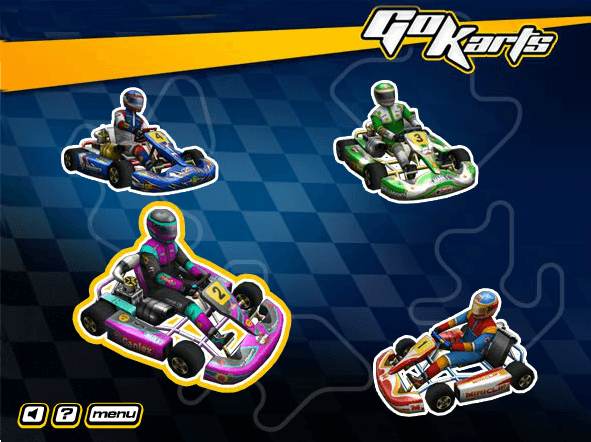 Go Karts oyunu yüklendikten oyun ana menüsüne geçiyoruz.