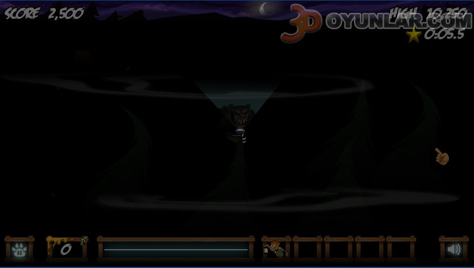 Karanlık av oyunu, gecenin kör karanlığında kaybolan hayvanınızı bulmak için korkunç ormana gir ve ayılara yakalanmamak için hızlı ol.