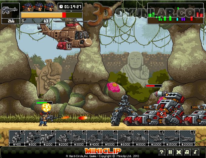 Komando saldırısı oyunu ile tank, uçak ve askerleriniz ile düşmanınıza saldırarak ana mekanlarını yok edin.