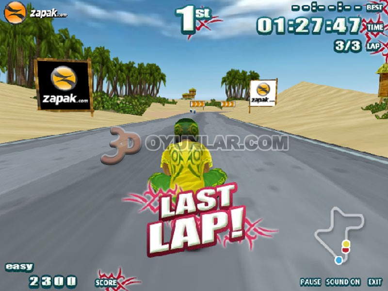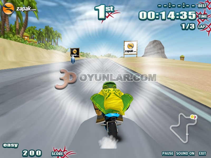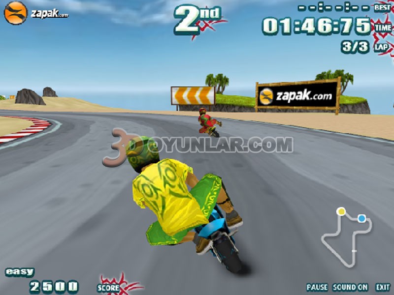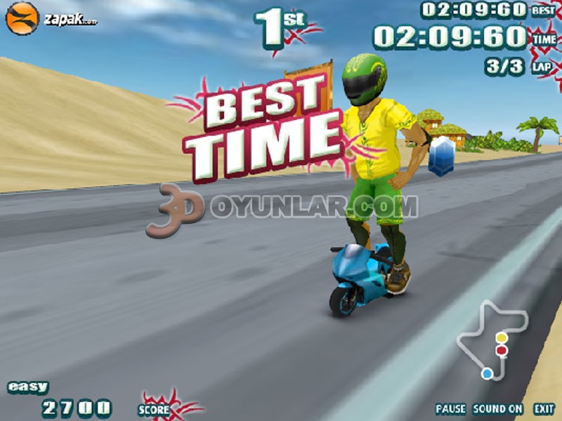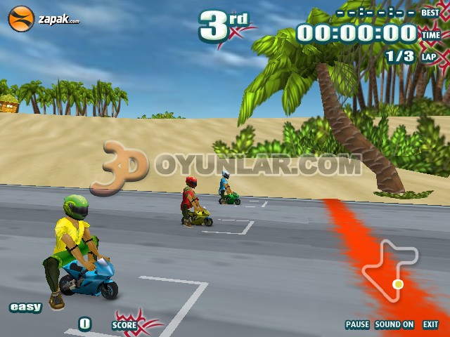 3D küçük motor yarışı oyunu, küçük motor adamı taşımayacak gibi görünüyor ama gayet rahat taşıyor. Virajlara girerken çok az fren yaparak rahatça dönebilirsiniz.
