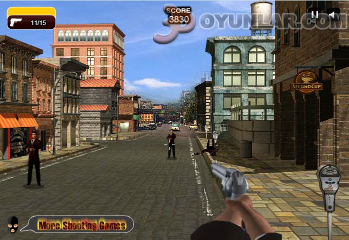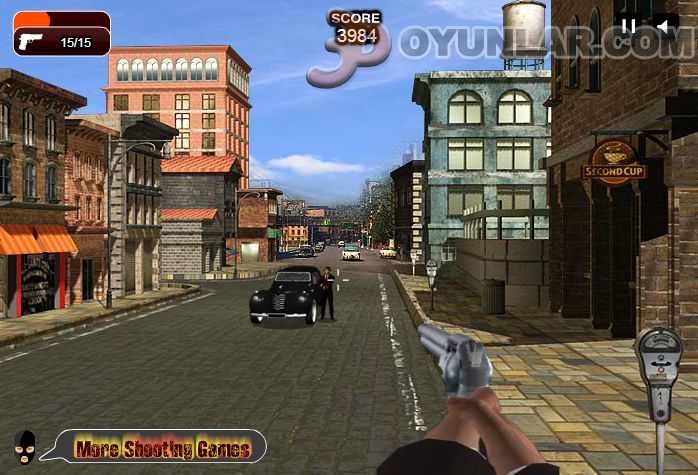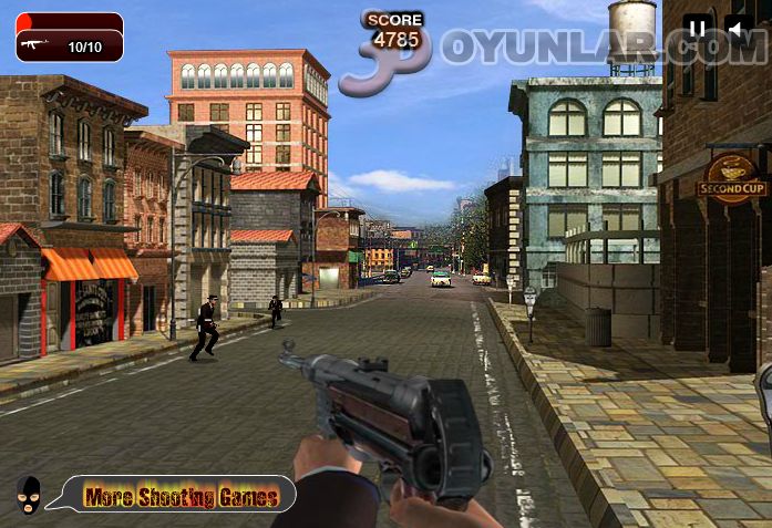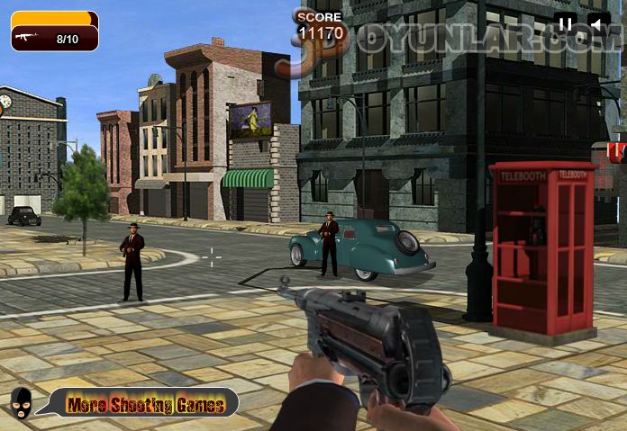 Oyun açıldıktan sonra karşınıza çıkan mafya adamlarını mouse yardımı ile hedef alıp vurun.