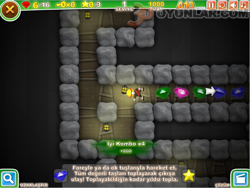 Süper madenciyi yön tuşları ile yönlendirebilirsiniz.