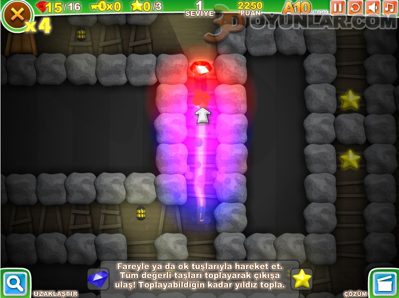 Maceranın adı süper madenci olan oyunda elmasları ve yıldızları toplayın ve zengin olun.