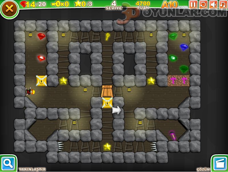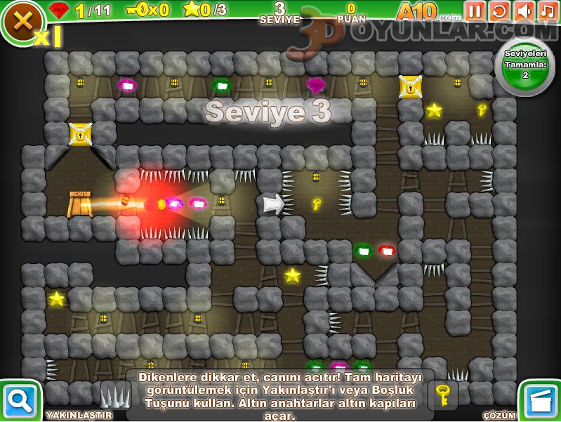 Oyunda sizin için hazırlanmış bölümde elmasların hepsini toplamayarak çıkış kapısını açabilirsiniz.