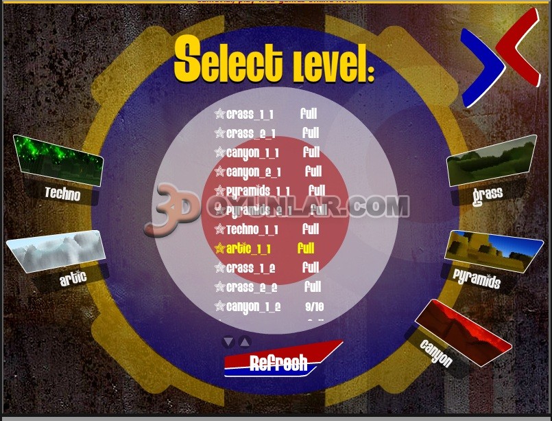 Çıkan ekranda tank savaşı yapabileceğiniz bölümler (select level ) görülüyor.Eğer bölümler görünmüyorsa aşağıda refresh butonunu tıklayarak sayfayı yenileyebilirsiniz.