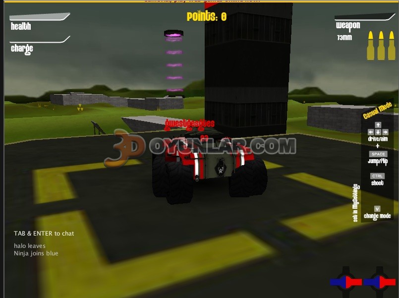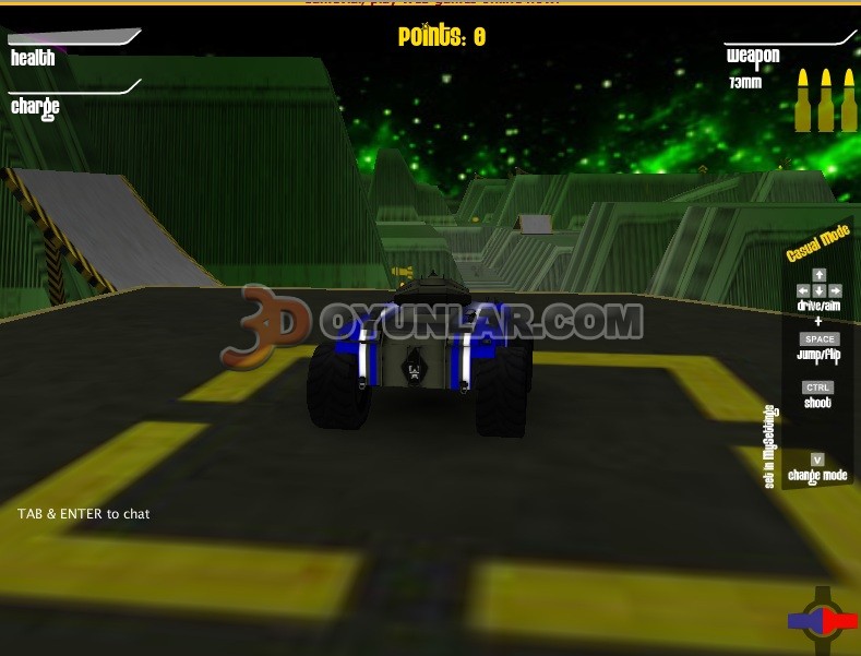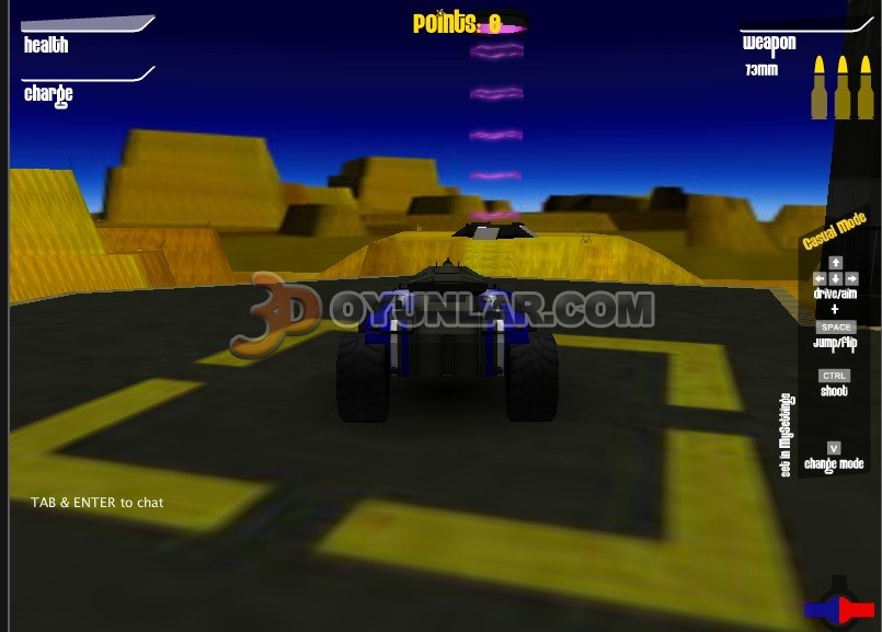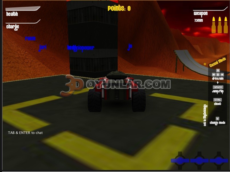 Mouse tıklaması ile ateş edip, Space (boşluk) tuşu ile tankı zıplatabiliyoruz.