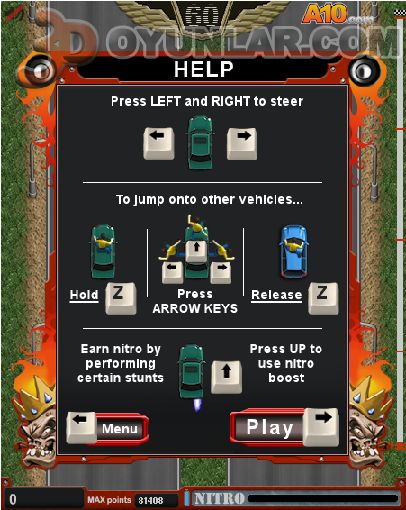 Oyunda trafik sıkıştığında ve içinde çıkılmaz bir hal aldığında BOŞLUK tuşuna basın ve diğer araca geçmek için yön tuşları ile zıplayın.