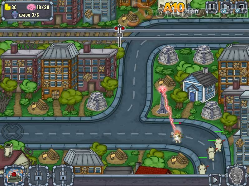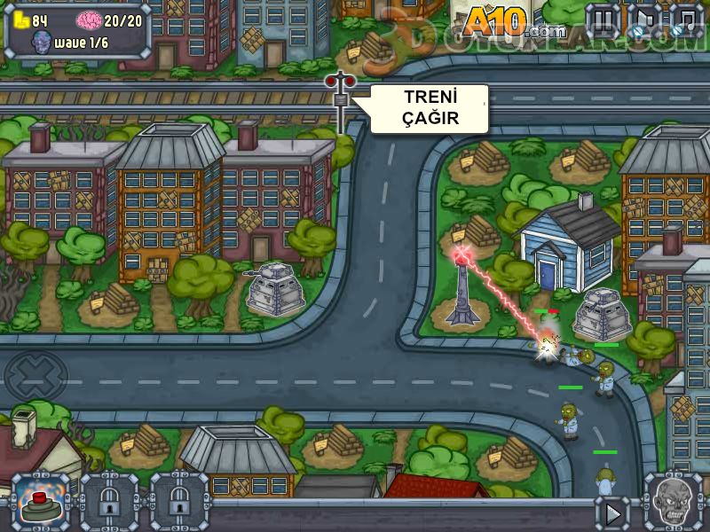 Zombi köyü oyunu, savunmasını oluşturduğunuz bölgeye akın eden zombilerin köyü ele geçirmelerine izin vermemelisiniz.