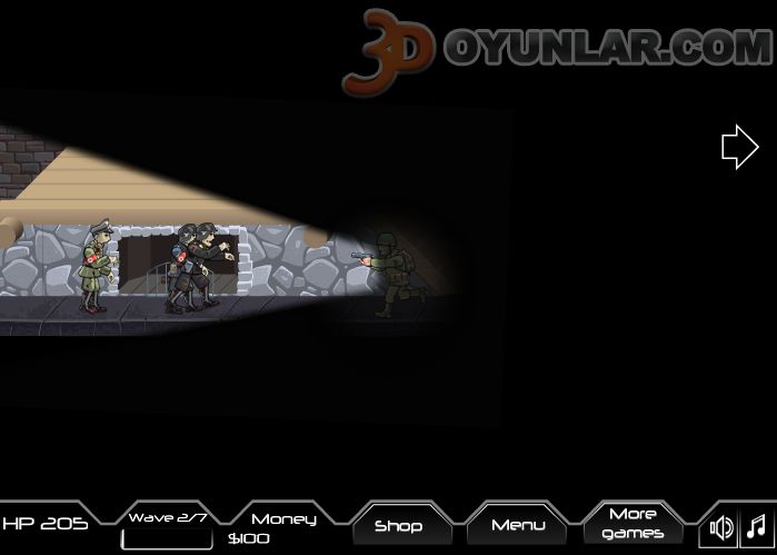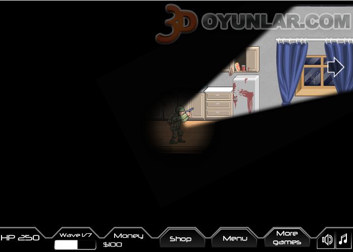 Zombi polisi oyunu, karanlığın içerisinde sizi tehdit eden düşman zombileri silahınız ile vurun ve şehrin elektriklerini tamir etmeye çalışın.