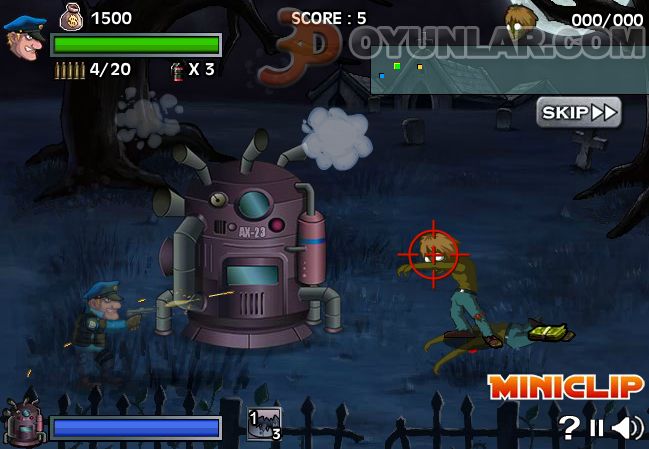 Mekanik düzeneğe saldıran zombileri silahınız ve bombalarınız ile öldürün.